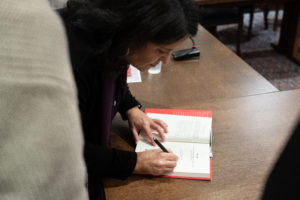 Araujo signing The Gift: How Objects of Prestige Shaped the Atlantic Slave Trade and Colonialism at Yale University, January 2024